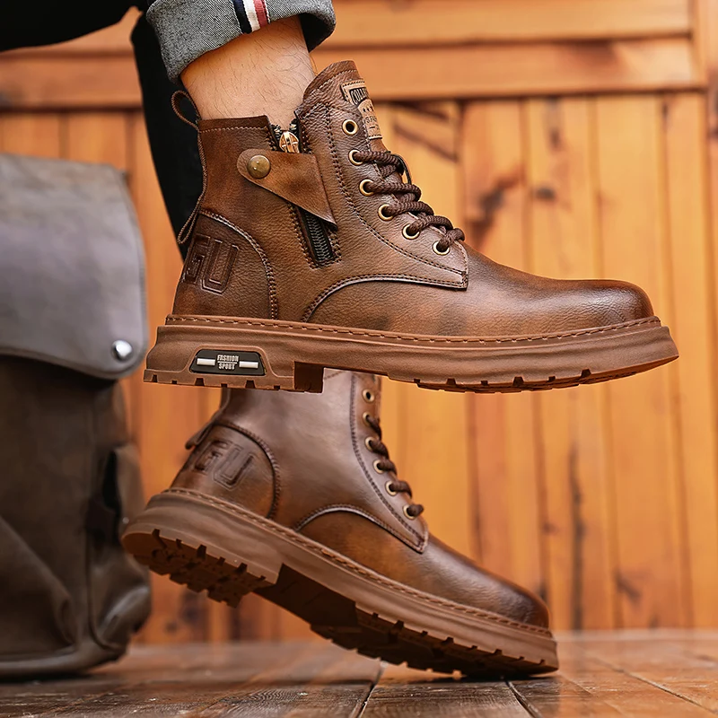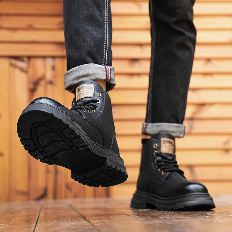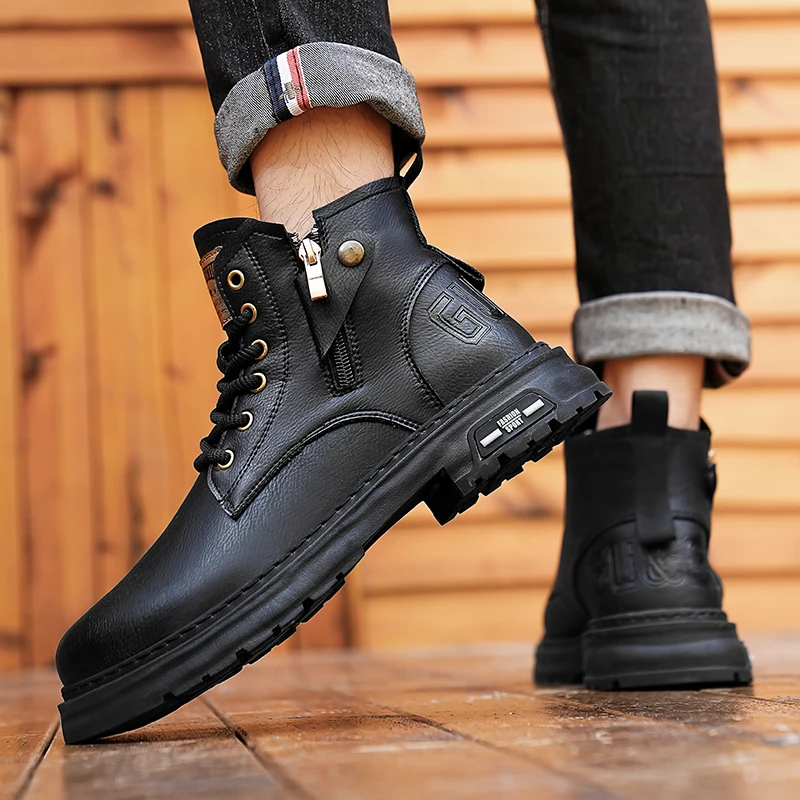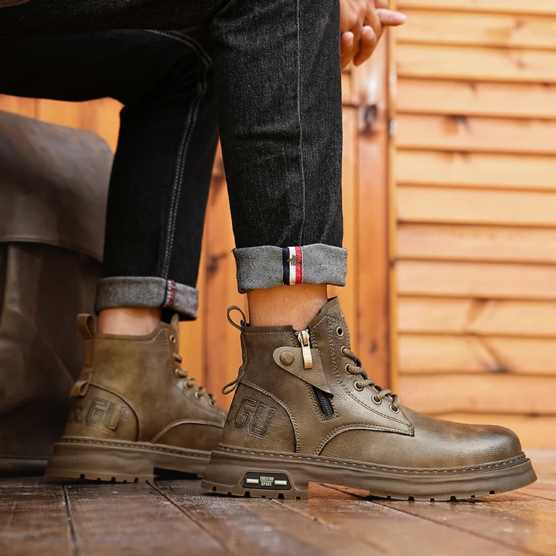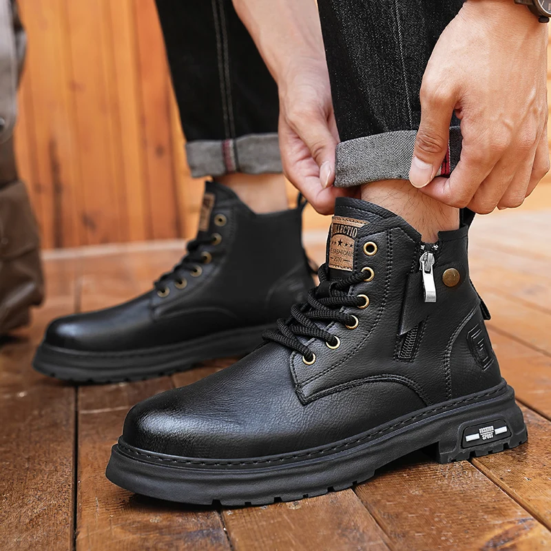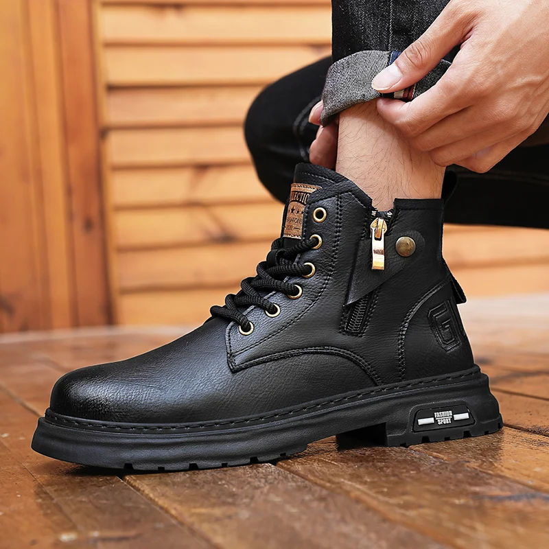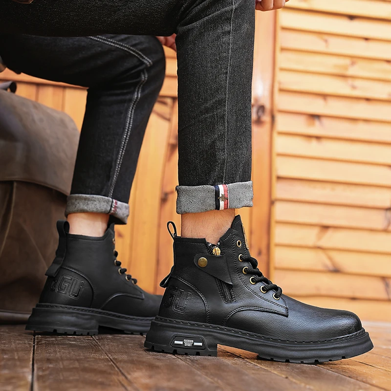 Botas De Couro De Cano Alto Masculino