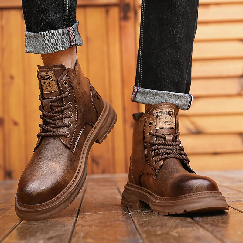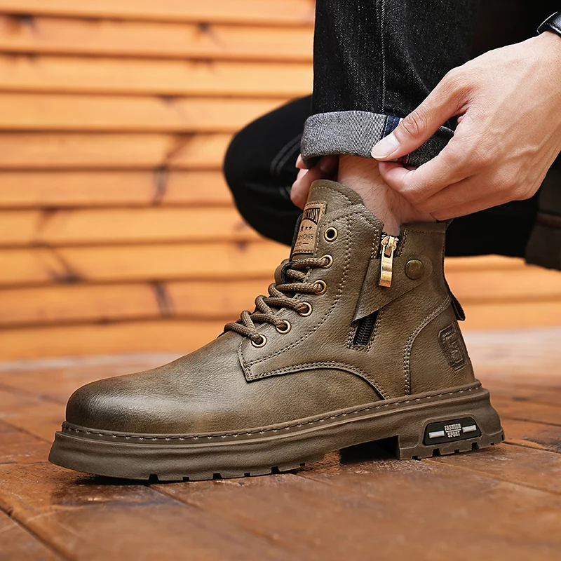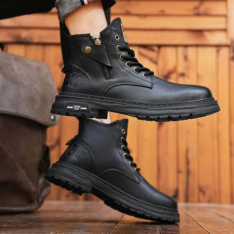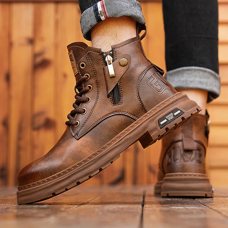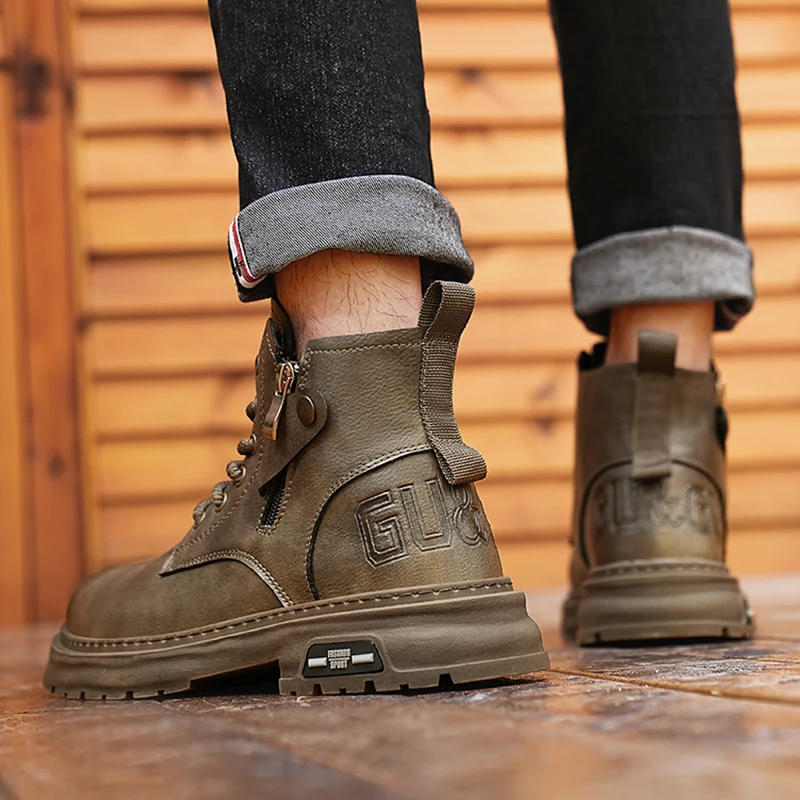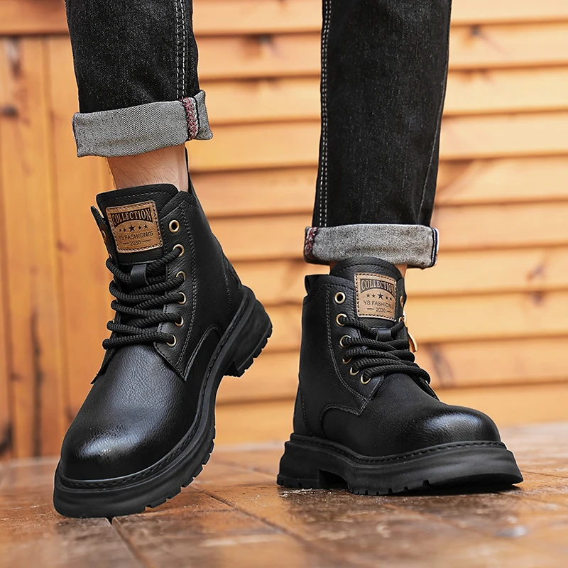 Botas De Couro De Cano Alto Masculino