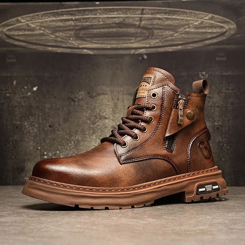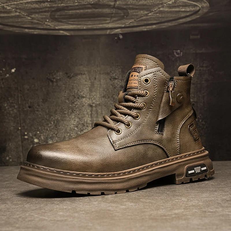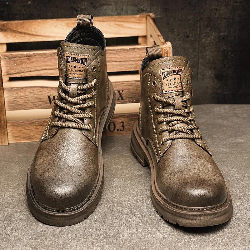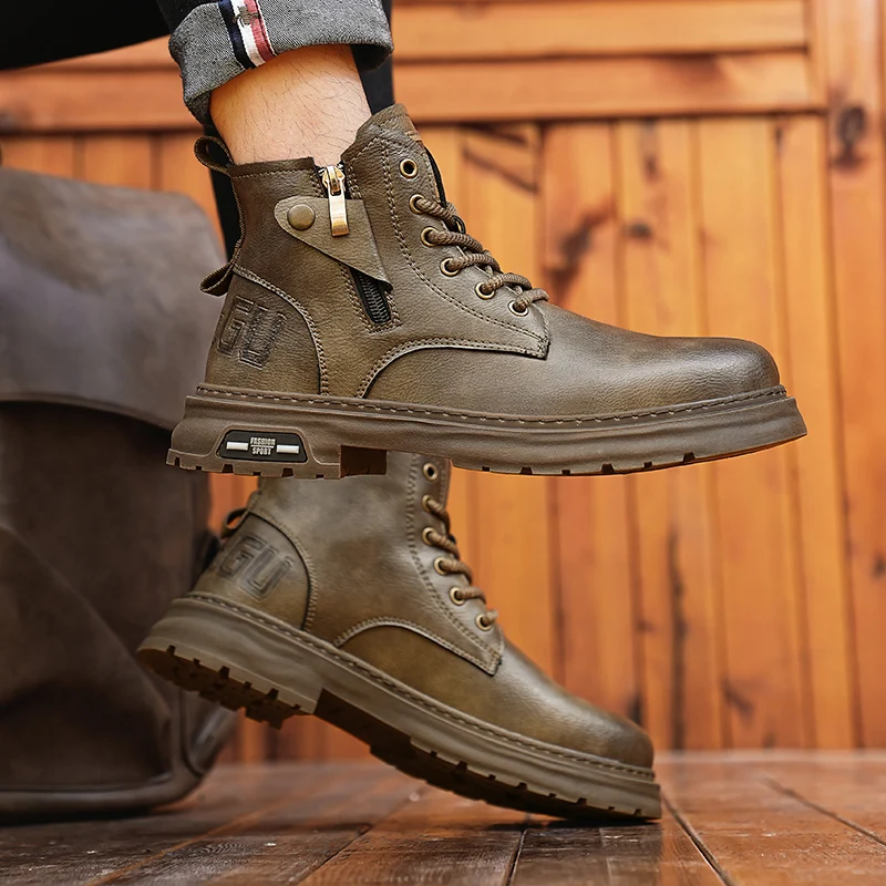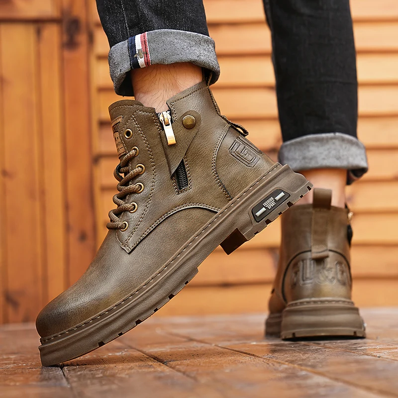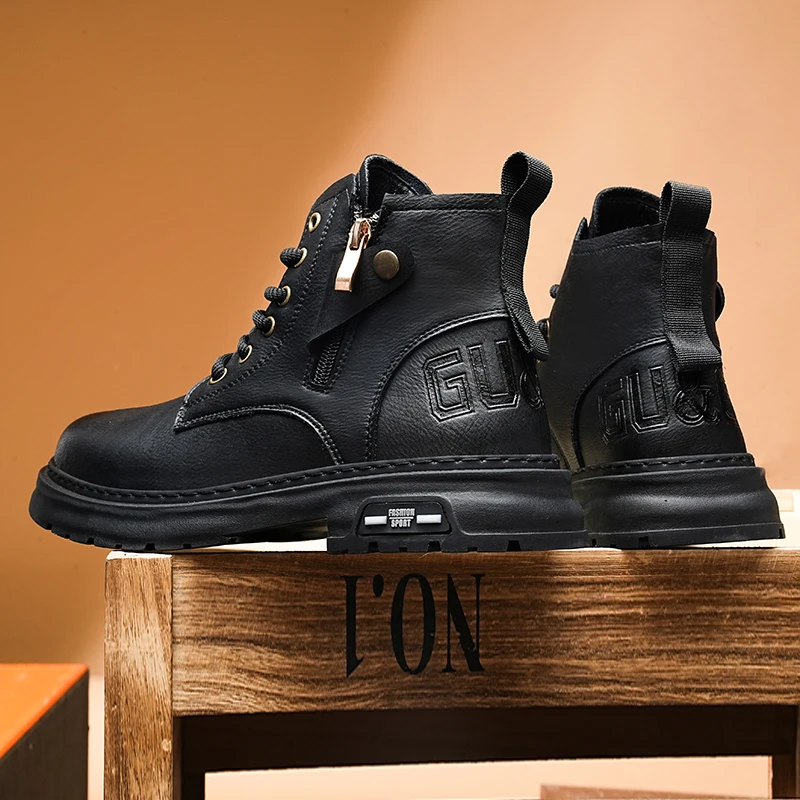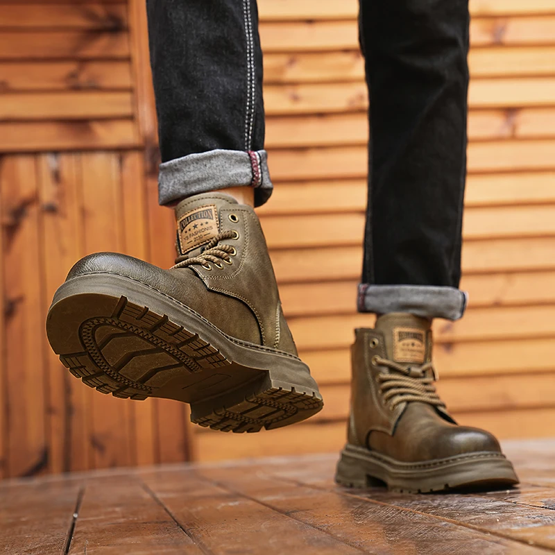 Botas De Couro De Cano Alto Masculino