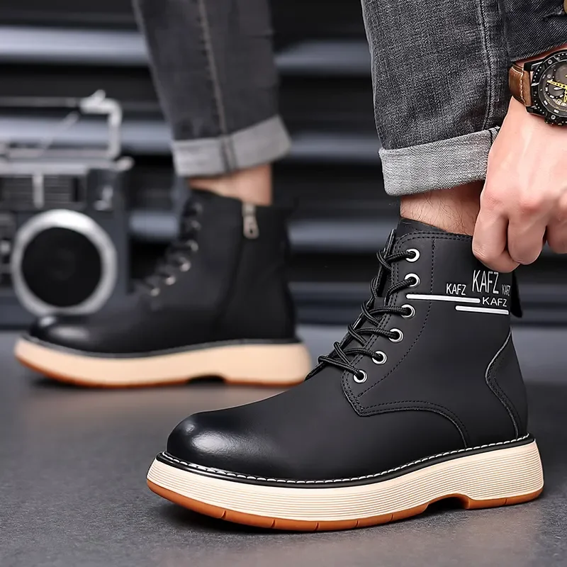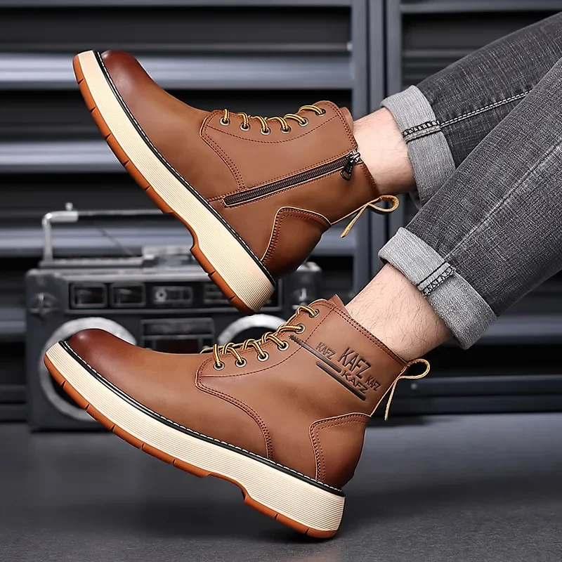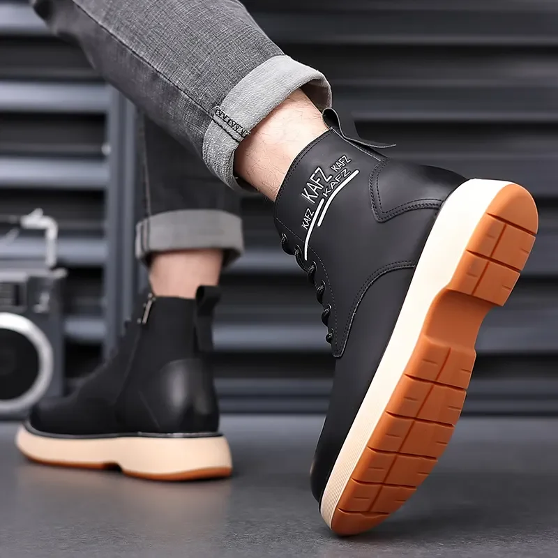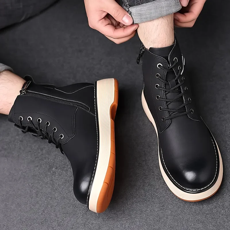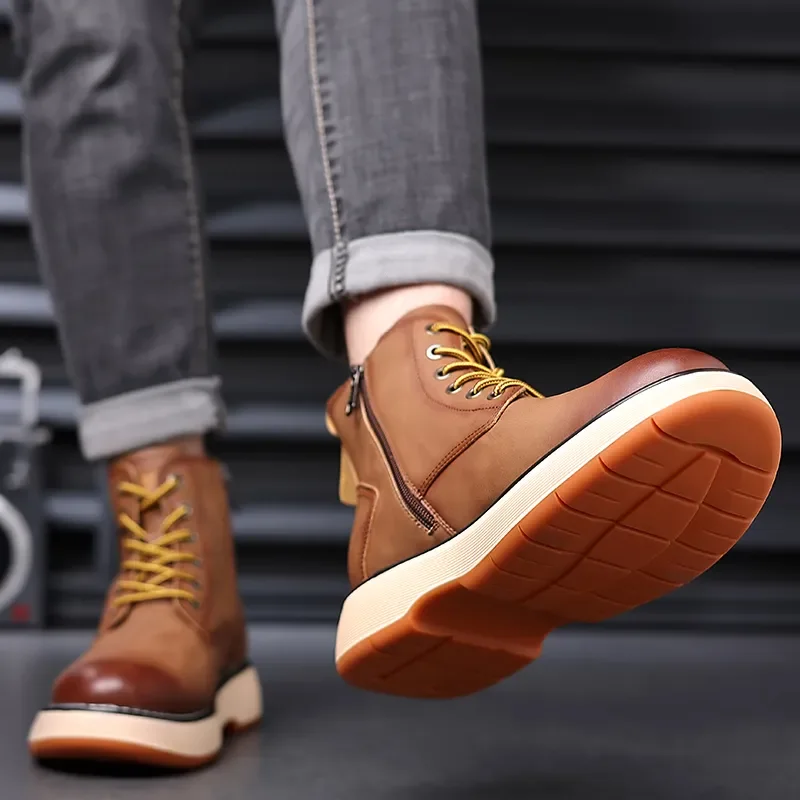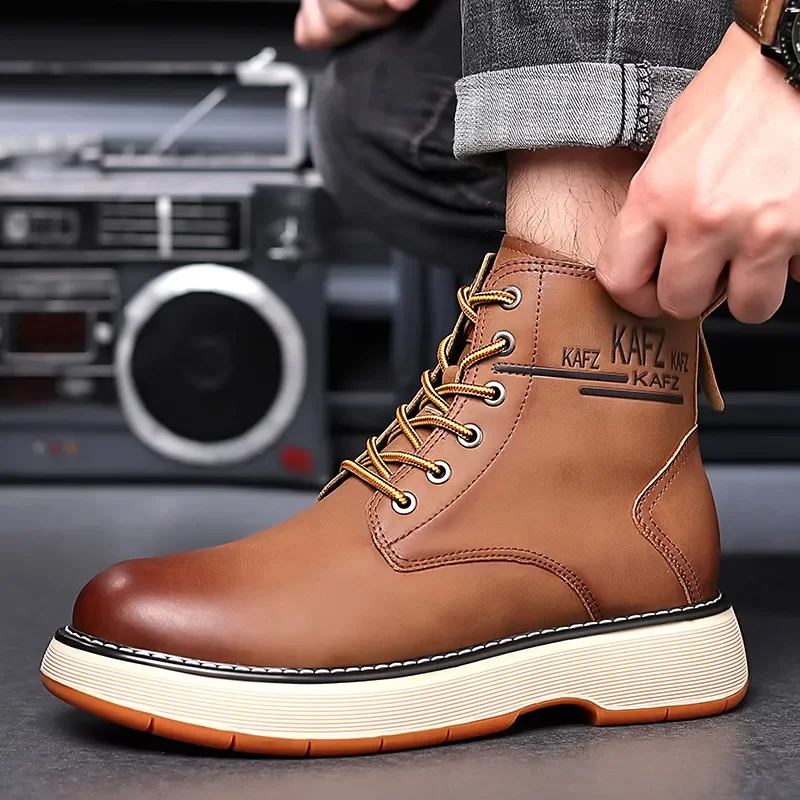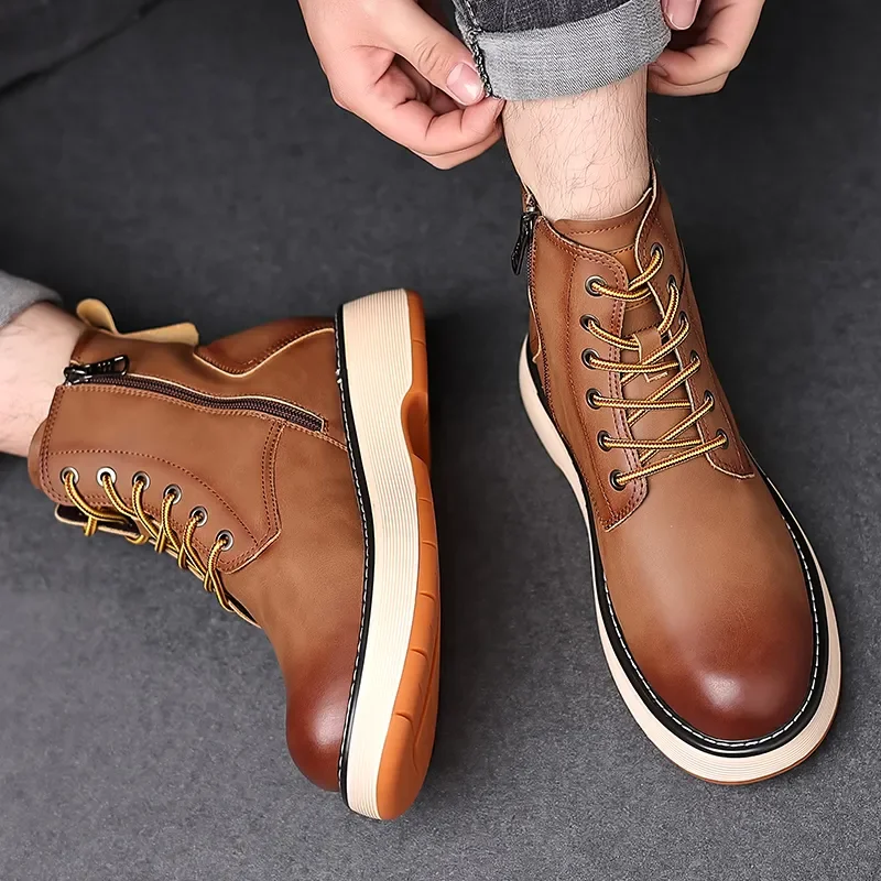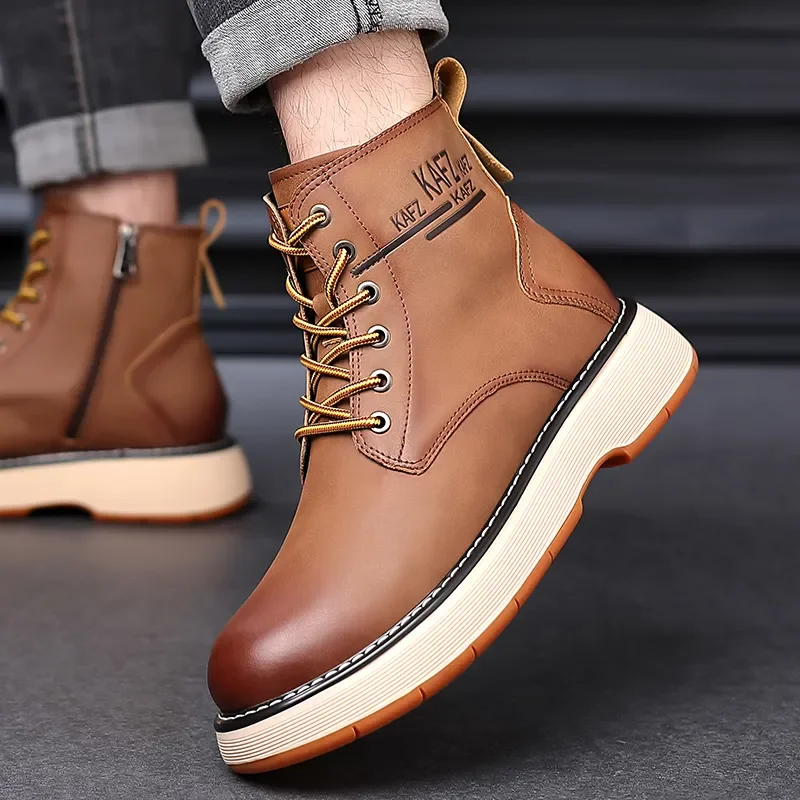 Botas Masculinas De Couro Genuíno Vintage