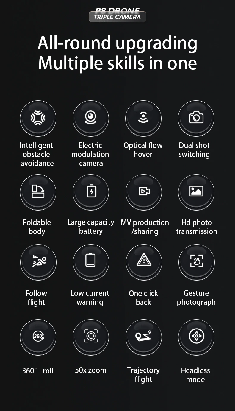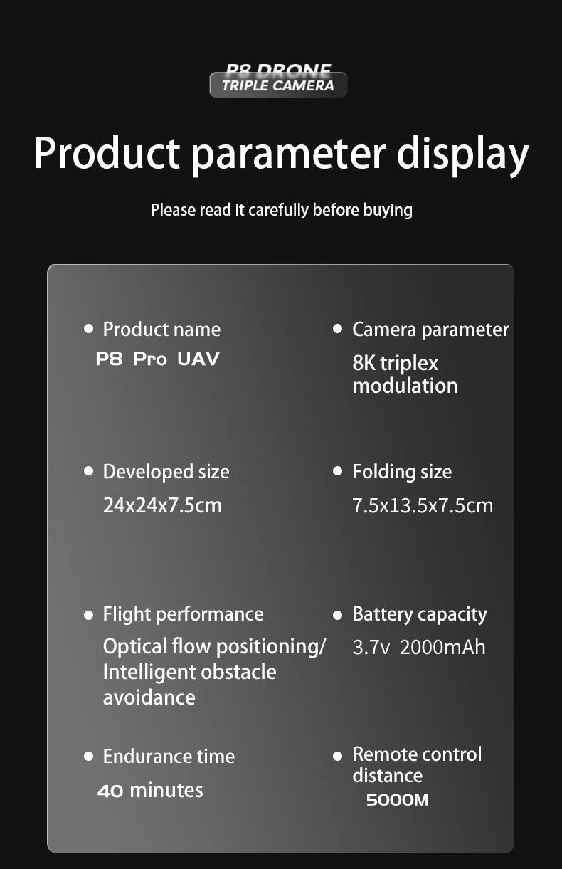Drone P8 Pro Professional Dobrável Quadcopter 8k