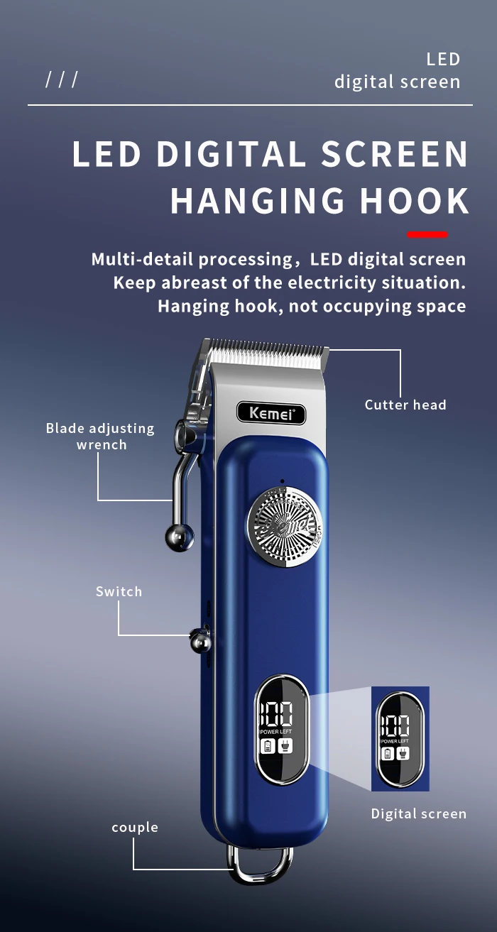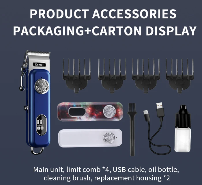 3. Display LED: Este aparador de cabelo está equipado com uma tela LED, que pode exibir a altura de corte atual e o nível da bateria, facilitando o uso e a energia restante e mais inteligente.