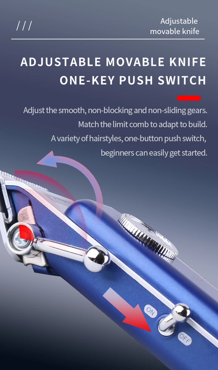 4. Alavanca ajustável do atarraxamento: Este aparador do cabelo caracteriza um projeto ajustável da alavanca do atarraxamento, que possa ser ajustado de acordo com estilos e necessidades diferentes do cabelo, fazendo seu processo do corte de cabelo mais conveniente e rápido.