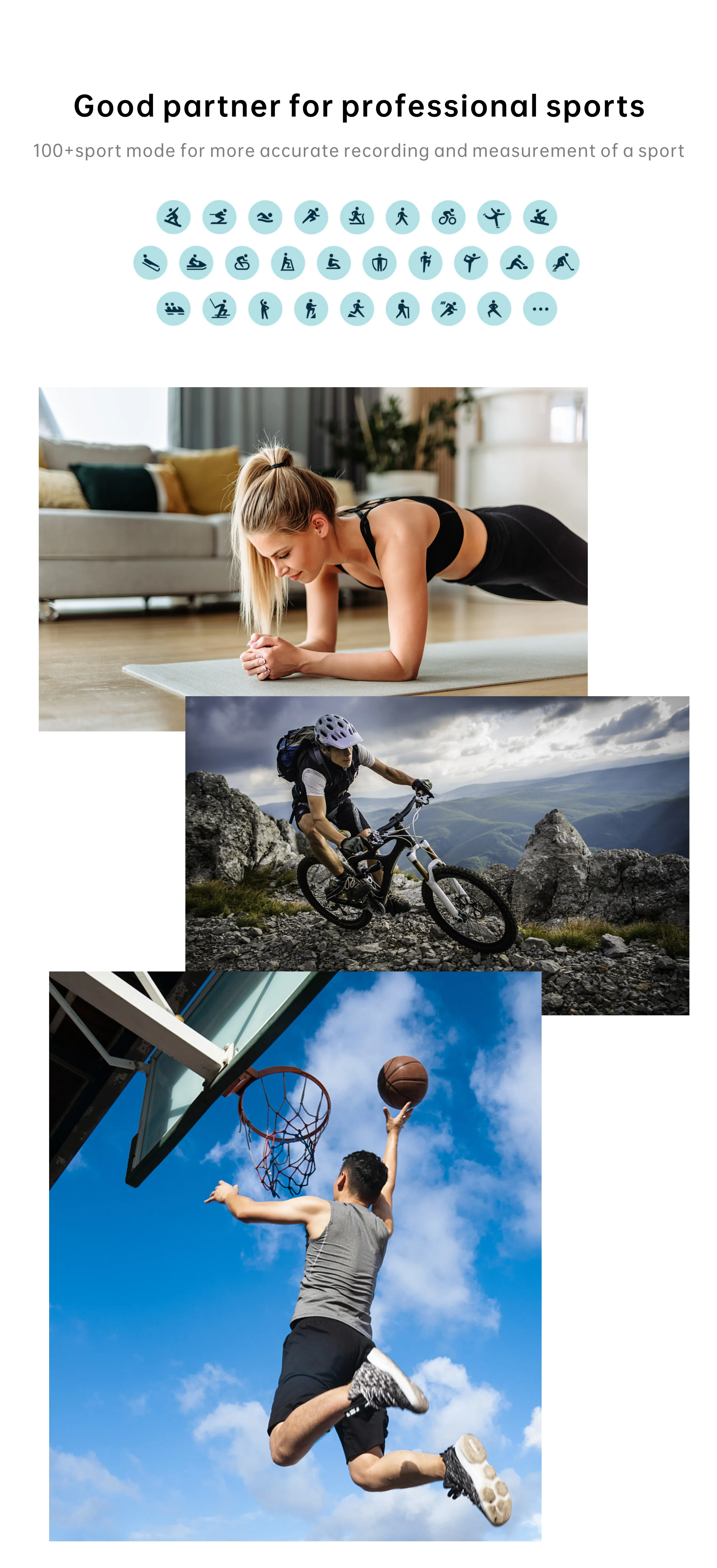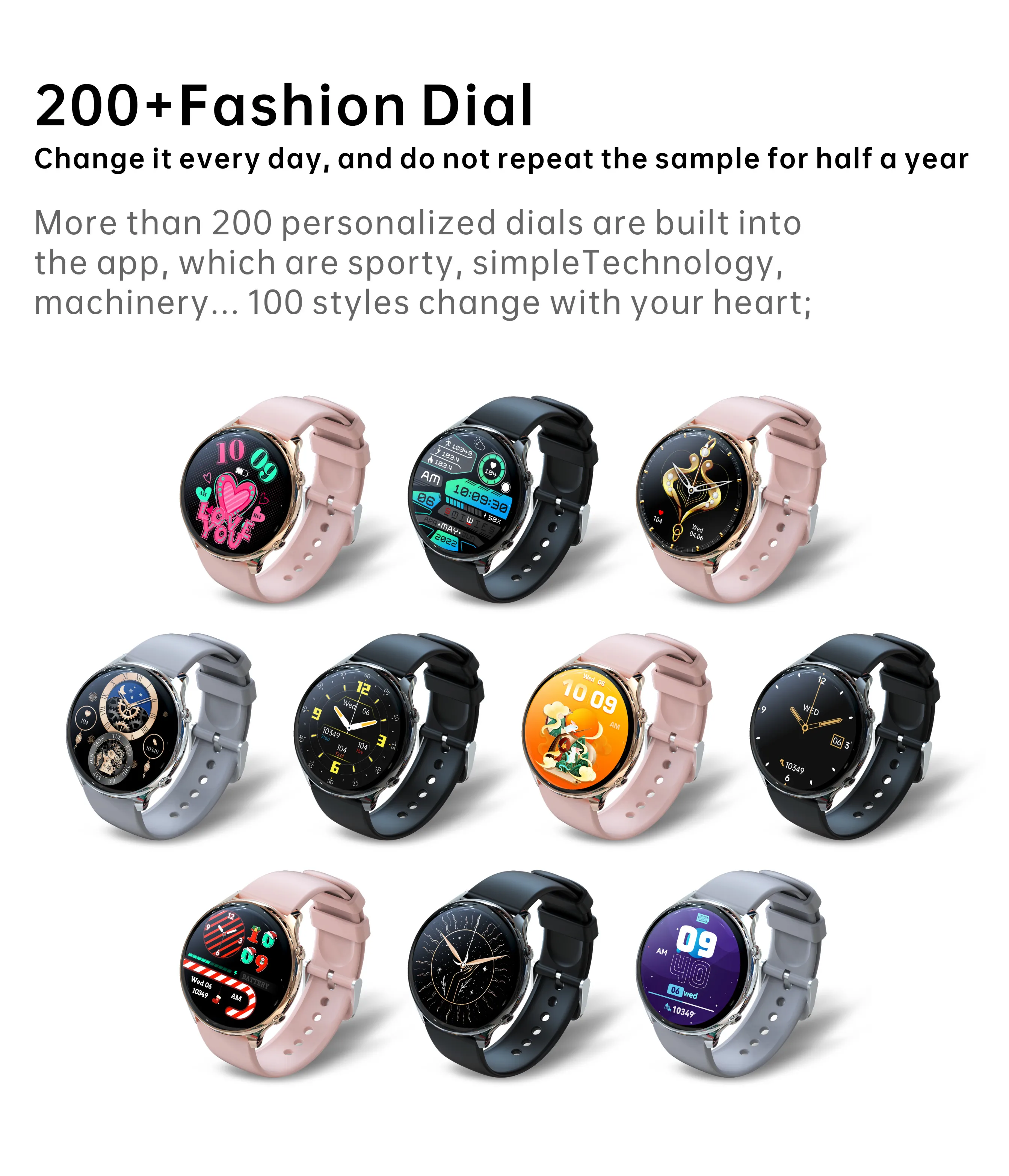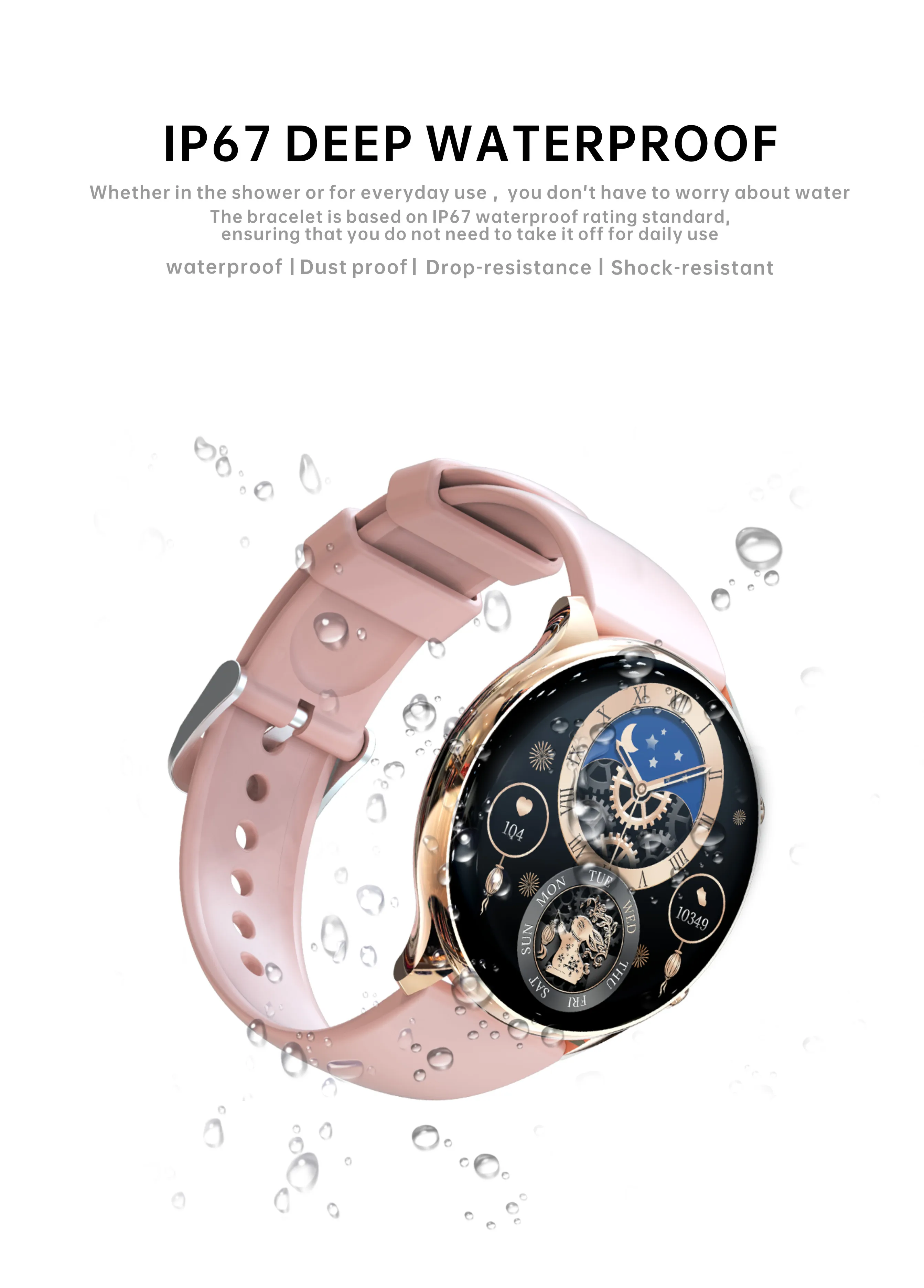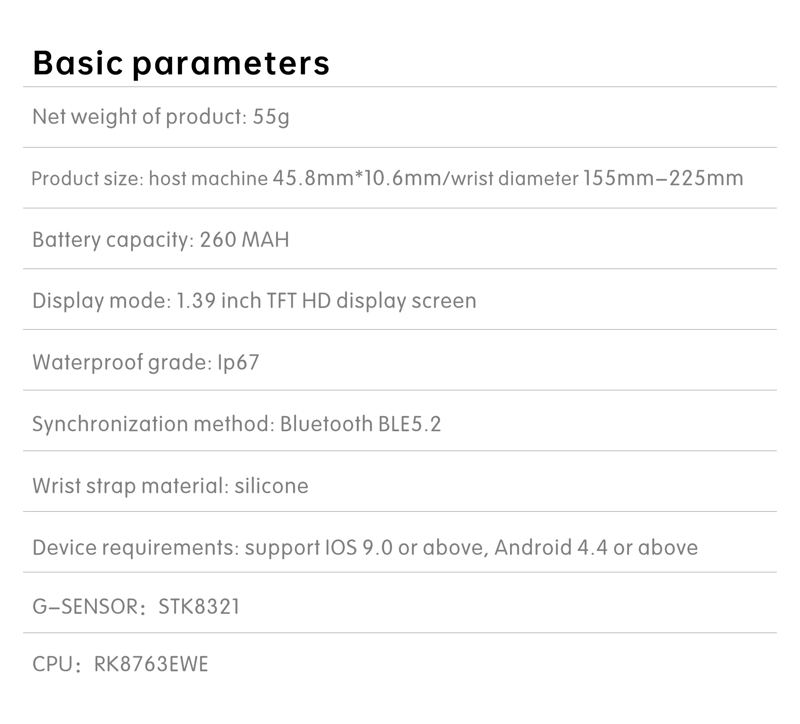 Atender/fazer chamadas telefônicas, monitoramento da frequência cardíaca, monitoramento da pressão arterial/oxigênio ECG, monitoramento do sono, passo do exercício/consumo calórico/tempo do exercício/exercício wechat, lembrete de chamada e exibição, mensagem push e display, fotografia de controle remoto, música tocando, modo multi-exercício, lembrete sedentário, configuração de despertador, vem com 5 dial, APP pode personalizar o dial